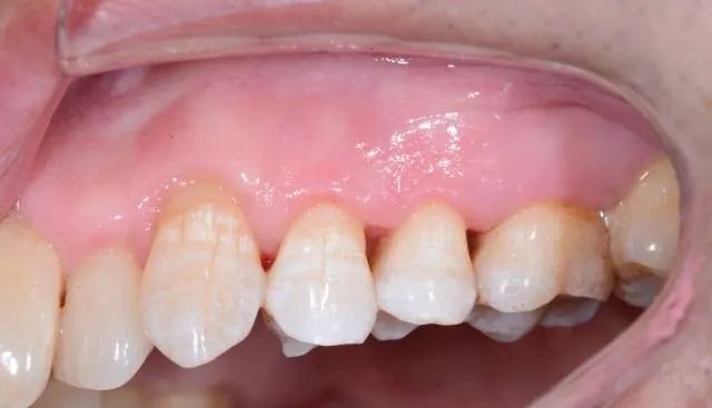 用小挖匙壓牙齦向牙齦方向,可以見到缺損完全暴露。